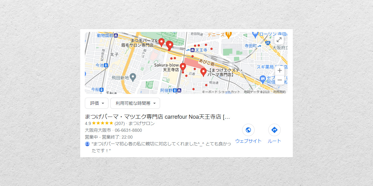※Googleビジネスの特性上、現在地やカスタマーニーズに合わせた表示順になるため変動がありあます